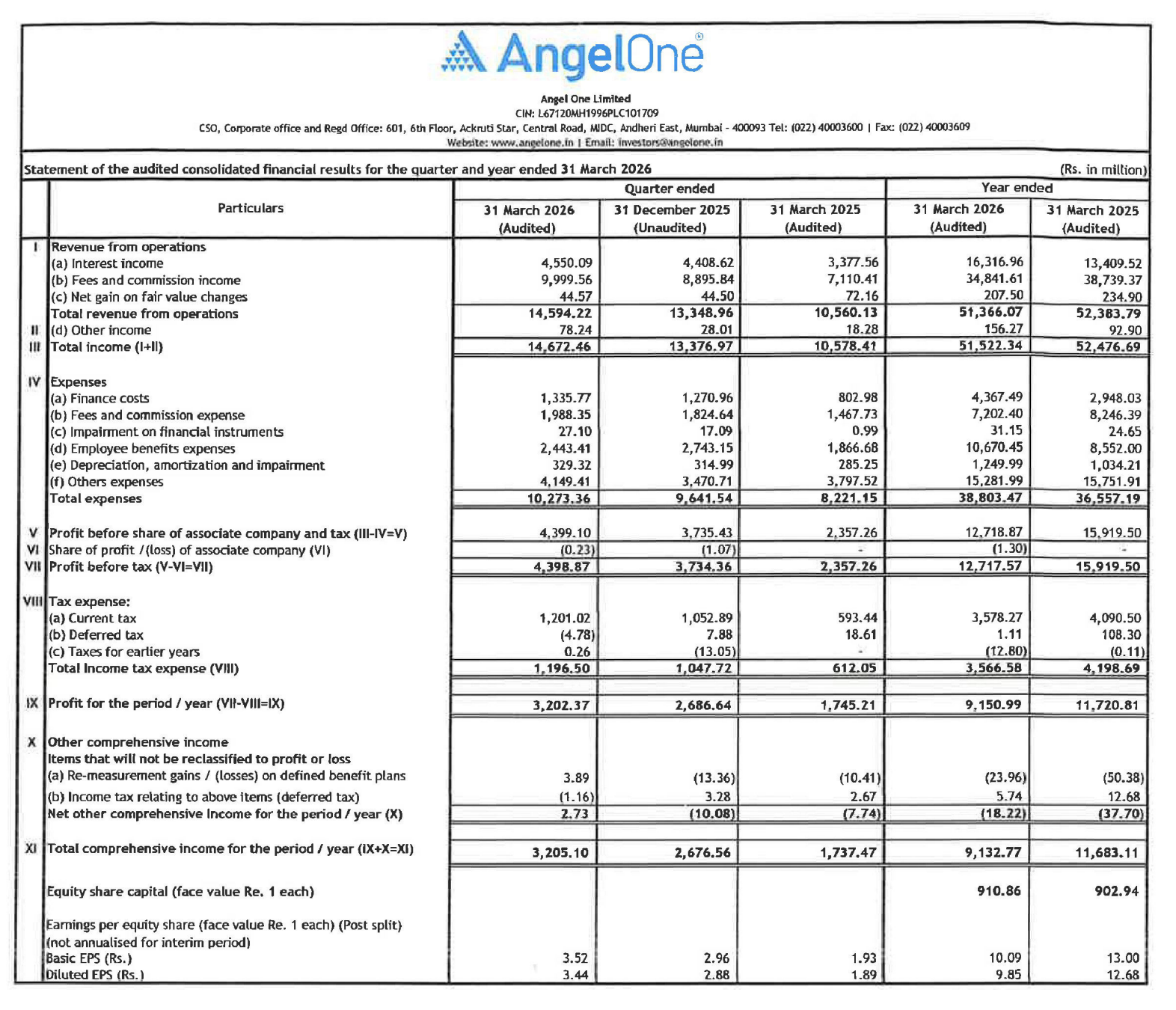 Angel One showed solid sequential growth in revenue and profit, but YoY decline indicates normalization after peak market activity