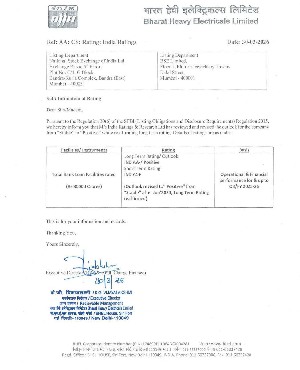 Official Exchange Filing: Bharat Heavy Electricals Limited