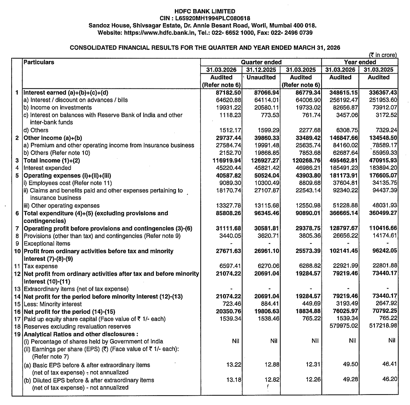 - Total Income (Q4 FY26): ₹116,919.94 crore