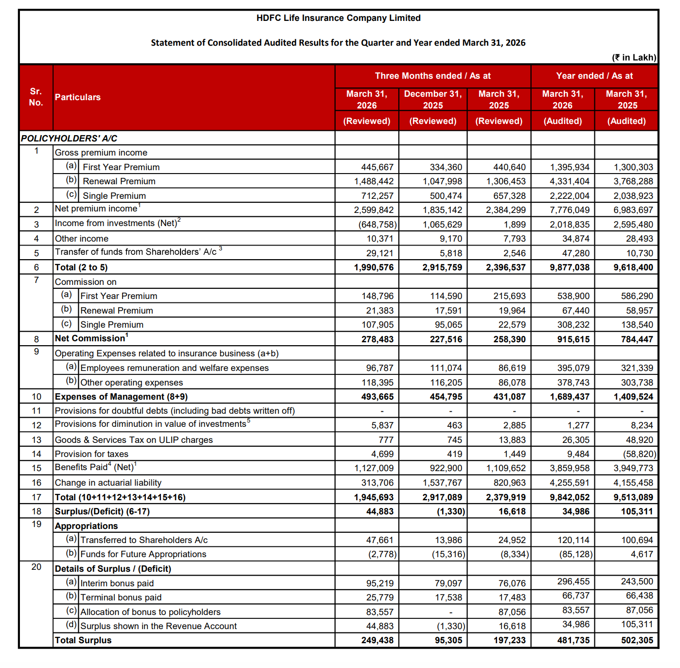 • Q4 FY26 Net Premium Income: ₹2,599,842 Lakhs