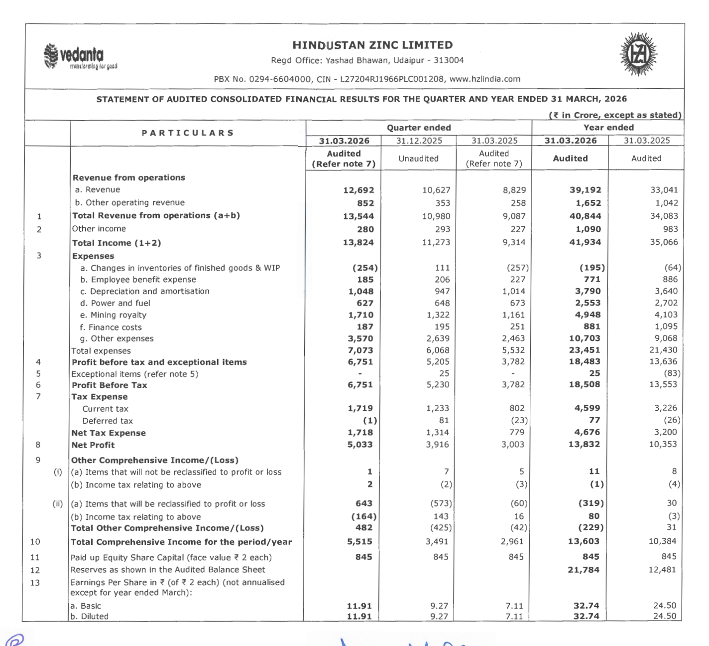 Hindustan Zinc Limited – Q4 FY26 Financial Results Analysis
