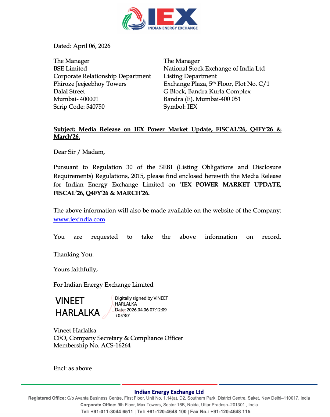 Official Exchange Filing: Indian Energy Exchange (IEX) Limited