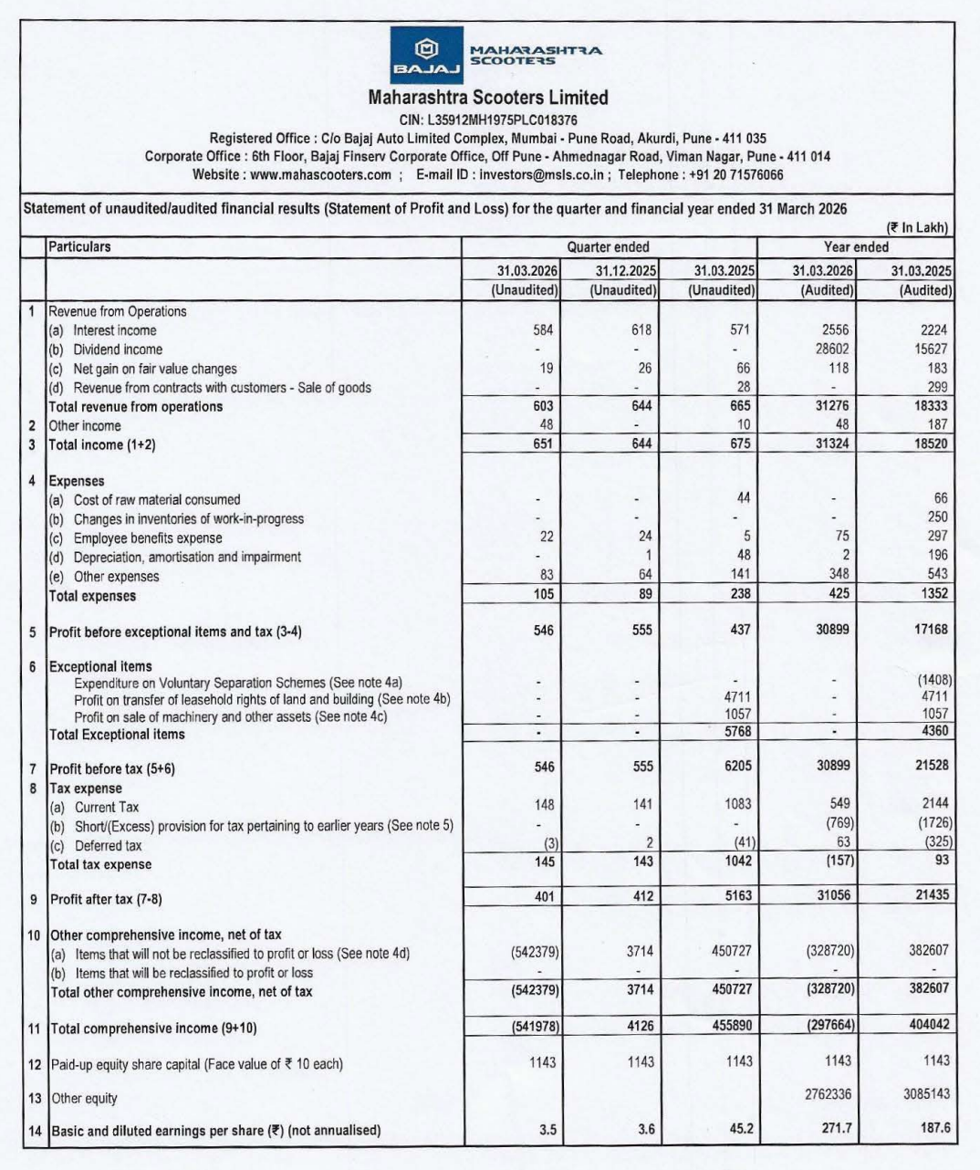 Maharashtra Scooters Ltd – FY26 Results Analysis