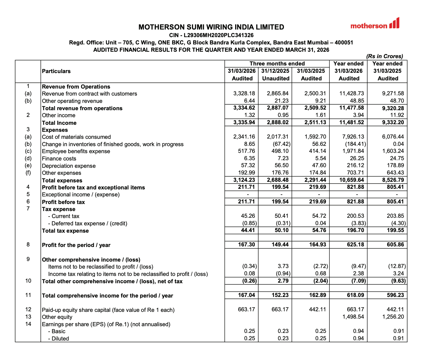 Official Exchange Filing: Motherson Sumi Wiring India Limited