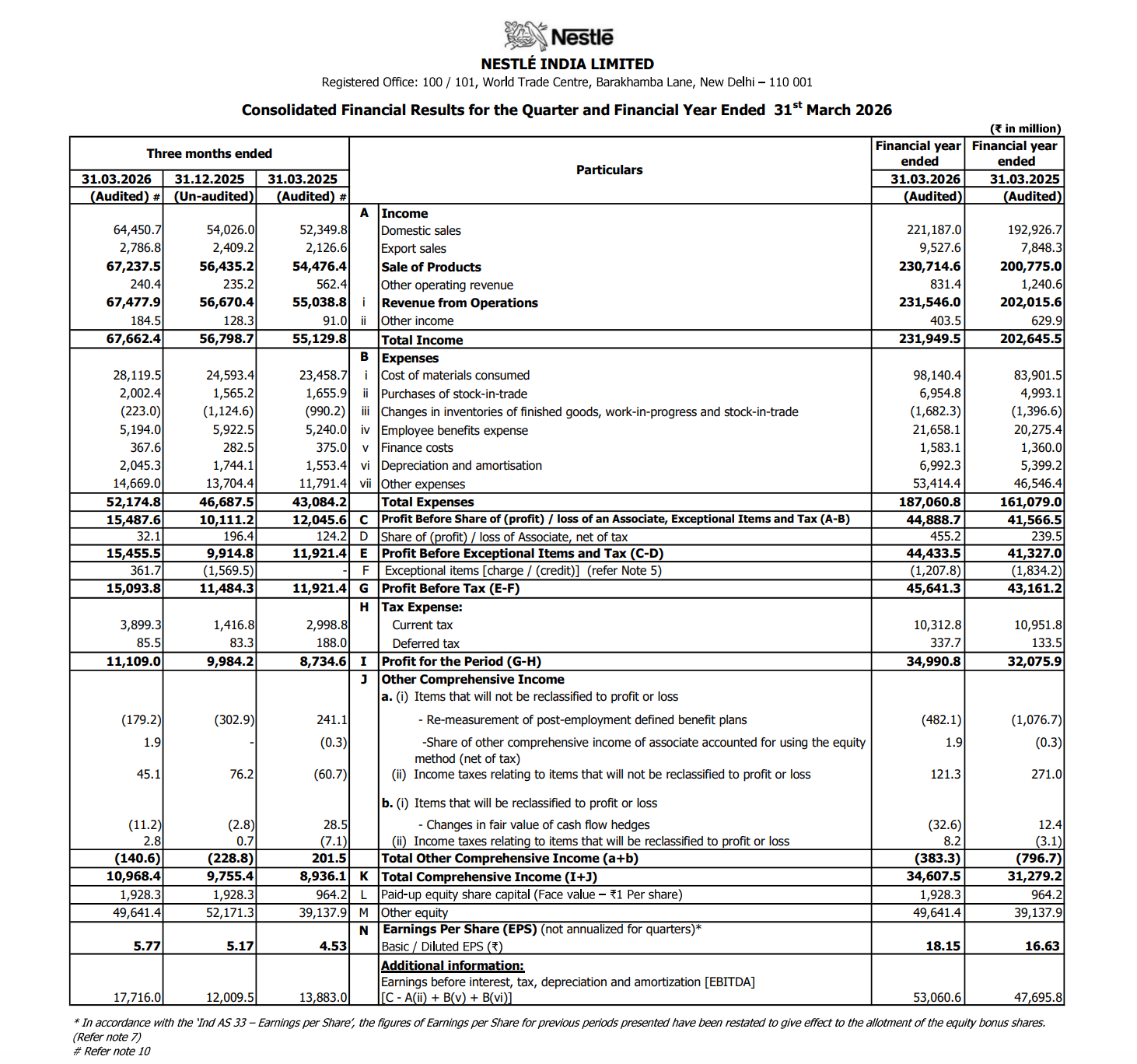 Nestlé India reported a strong Q4 FY26 performance, supported by revenue growth, sharp profit expansion, margin improvement, stronger operating cash flow, and improved balance sheet liquidity.