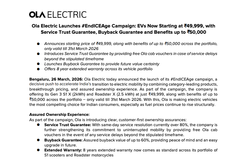 Ola Electric announced a major campaign targeting mass EV adoption by combining: