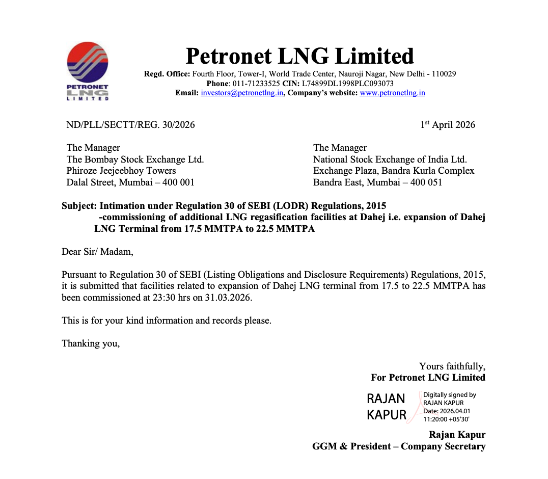 Petronet LNG Commissions Dahej Expansion; Capacity Rises to 22.5 MMTPA