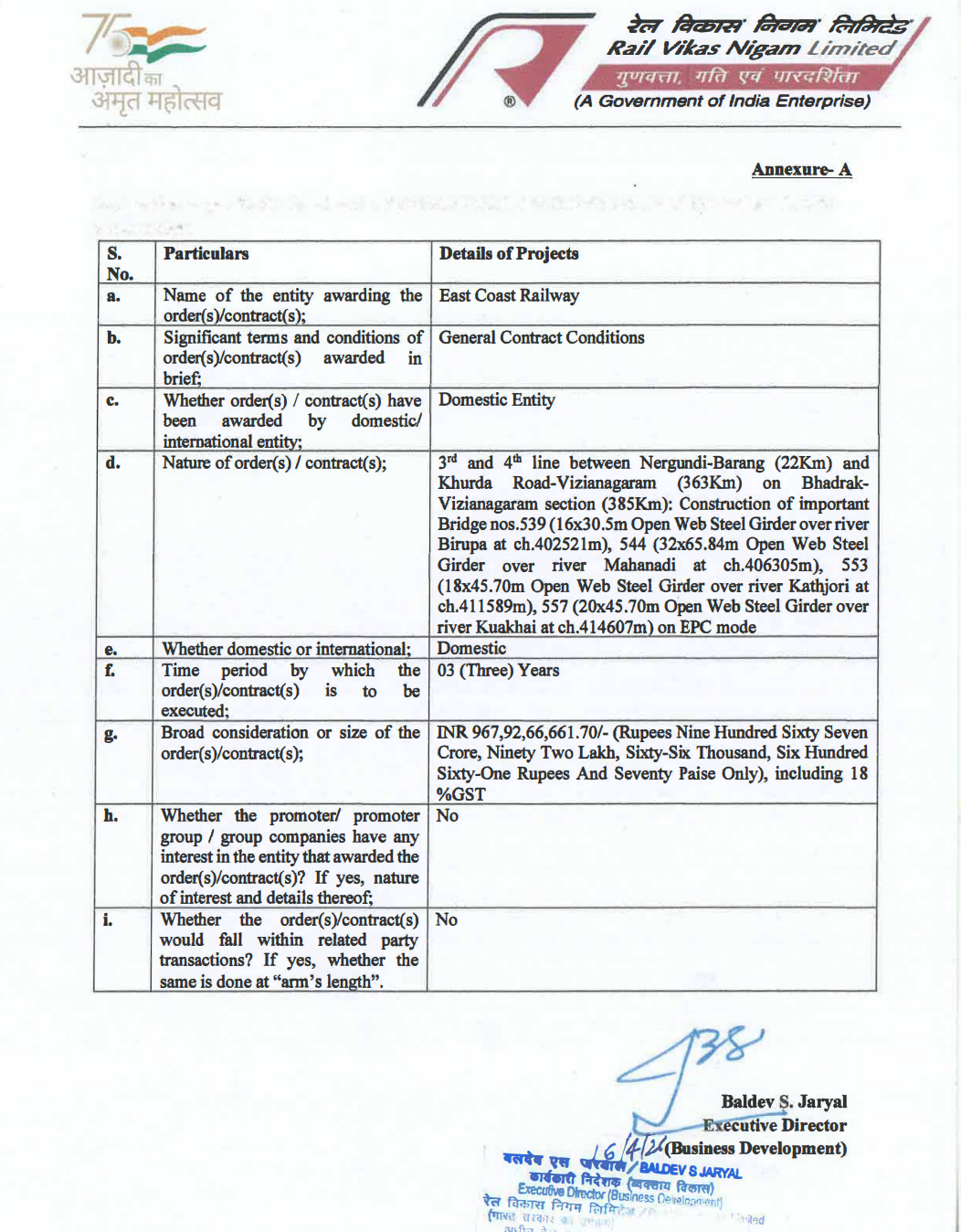 Official Exchange Filing: Rail Vikas Nigam Limited