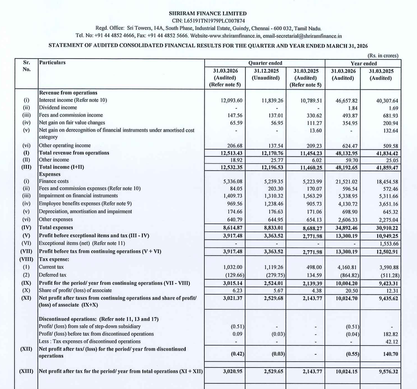 Shriram Finance Ltd – Q4 FY26 Financial Results Analysis