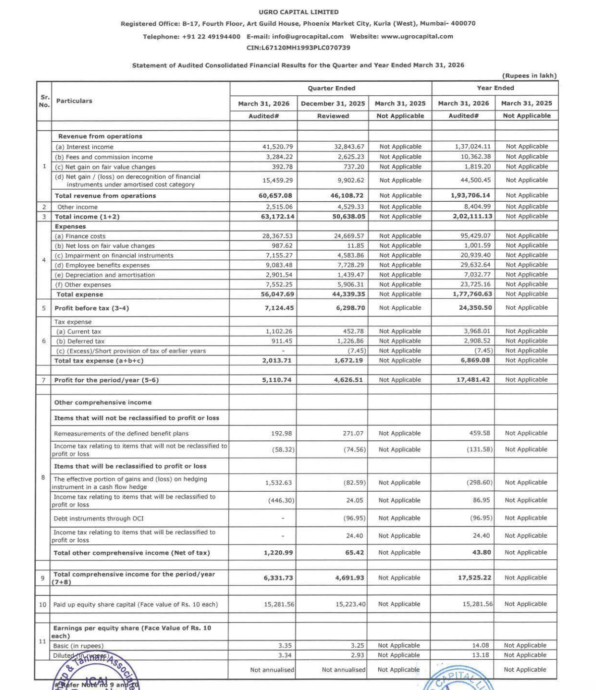UGRO Capital reported a strong Q4 FY26 performance, driven by robust growth in revenue, sequential profit expansion, balance sheet scale-up, and strong financing support.
